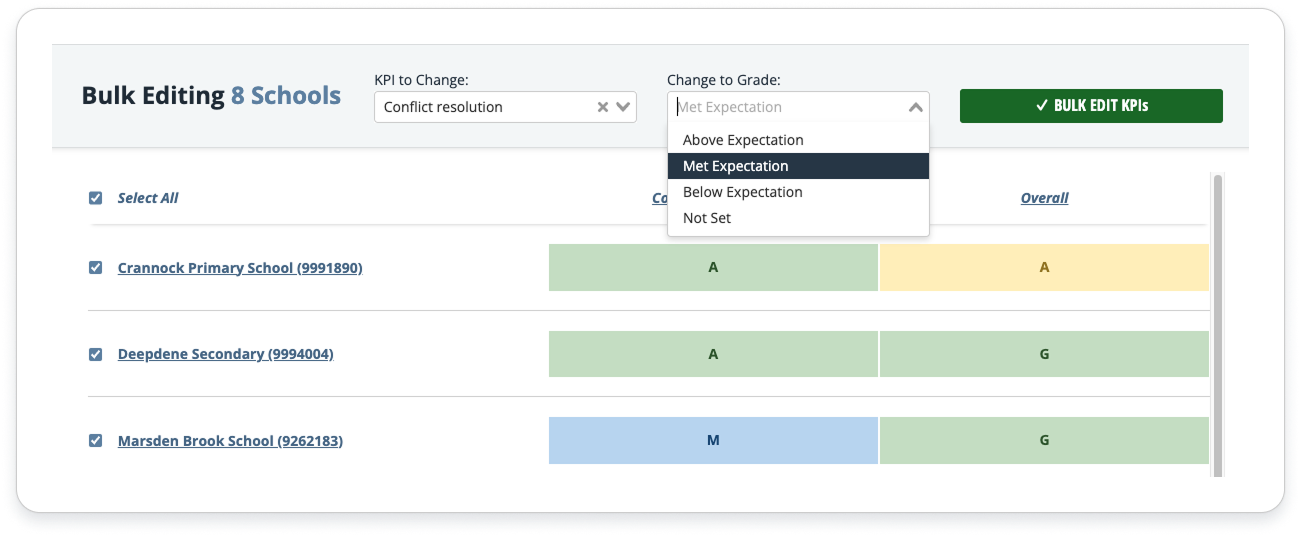 - Bulk Editing – Set all values for a single KPI to one value in just one step.